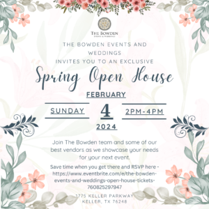 Untitled « All Events This event has passed. The Bowden Spring Open House February 4, 2024 @ 2:00 pm - 4:00 pm « Haley Mai – Bliss Exclusive Designer Morilee Bridal Trunk Show including Plus » Add to calendar Google Calendar iCalendar Outlook 365 Outlook Live Details Date: February 4, 2024 Time: 2:00 pm - 4:00 pm Event Category: Open House Website: https://thebowden.org/ Venue The Bowden 1775 Keller Parkway Keller, TX 76248 United States + Google Map Phone 8173791775 View Venue Website